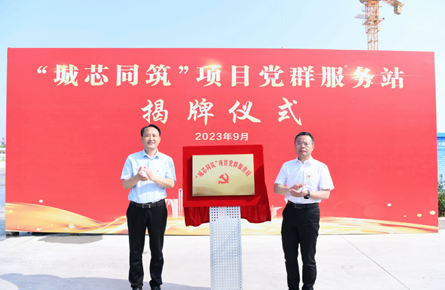 園區(qū)黨工委委員、管委會副主任崔廣全、張漢華共同為“城芯同筑”項目黨群服務站揭牌,開啟央企與地方企業(yè)黨建共建的美好開端。