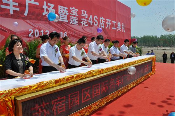5月16日上午10時(shí)58分,蘇宿園區(qū)國際名車廣場暨寶馬、蓮花4S店開工典禮在蘇宿工業(yè)園區(qū)隆重舉行。