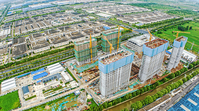蘇宿工業(yè)園區(qū)為滿足入園企業(yè)員工集中住宿需求,讓企業(yè)擁有更多的精力專注于生產(chǎn)經(jīng)營,建成第一集宿區(qū)—園區(qū)公舍,在建第二集宿區(qū)—青年公寓。青年公寓一期項(xiàng)目建筑面積約13.6萬平方米,含藍(lán)領(lǐng)公寓、白領(lǐng)公寓、商業(yè)樓,項(xiàng)目建成后可入住員工約8000人。