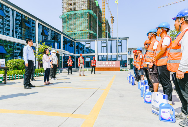 炎炎夏日送清涼,絲絲關懷暖人心。持續(xù)高溫悶熱天氣,給堅守一線工人帶來了嚴峻“烤”驗,也時刻牽動著公司領導的心。8月10日上午,城發(fā)公司董事長、總經(jīng)理李蘭霞,總經(jīng)理助理陸永軍、張驥一行對公司在建項目一線施工人員和明日鄰里中心物業(yè)人員開展防暑降溫送清涼慰問活動,為奮戰(zhàn)在高溫一線的勞動者們送上一份清涼、一份關懷。