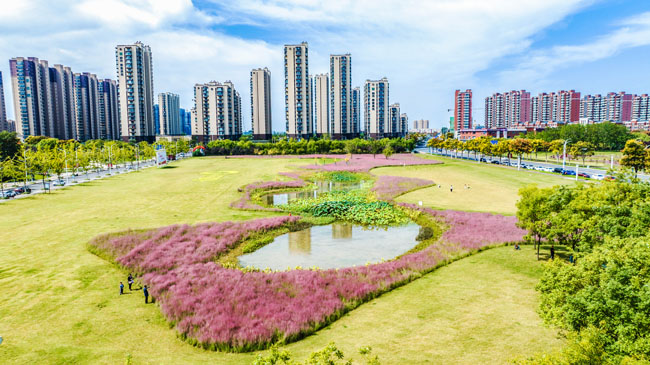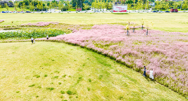 2023年10月1日,蘇宿工業(yè)園區(qū)蘇州公園北側(cè)綠地的粉黛亂子草盛開了,一片片粉色花海如夢似幻,吸引游人前來觀賞,樂享國慶假期。
