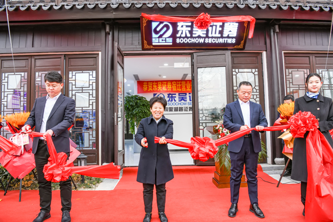 12月18日,在蘇宿工業(yè)園區(qū)蘇州街,東吳證券宿遷營業(yè)部正式開業(yè),為我市本月內(nèi)新增的第二家證券機構(gòu)。市地方金融監(jiān)督管理局局長王冬梅,蘇宿工業(yè)園區(qū)黨工委委員、管委會副主任張漢華,東吳證券股份有限公司運營管理部總經(jīng)理孫健出席活動,并共同為東吳證券宿遷營業(yè)部開業(yè)剪彩。