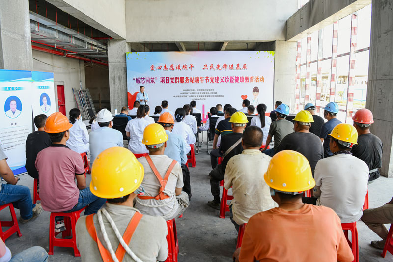 本次活動,由“城芯同筑”黨群服務站精心策劃,周密安排。宿遷市第一人民醫(yī)院內(nèi)科黨總支書記、大內(nèi)科副主任、風濕免疫科主任臧銀耐心解答現(xiàn)場工友的健康疑問,根據(jù)工友的身體情況給予專業(yè)的醫(yī)療建議及指導,得到了現(xiàn)場工友的一致好評?;顒蝇F(xiàn)場以建筑工地常見的意外傷害應急處理為主題開展健康知識講座,生動形象的講解處理意外傷害相關知識及應急救援措施,同時現(xiàn)場開展全國“愛眼日”及中國“房顫日”等宣傳教育活動。