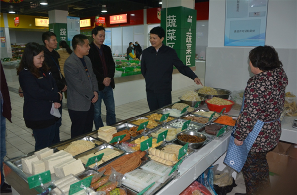戈亮一行現(xiàn)場聽取了菜場負(fù)責(zé)人開業(yè)準(zhǔn)備工作情況匯報(bào),實(shí)地察看了生鮮菜場規(guī)劃布局、開業(yè)方案、食品安全臺(tái)賬、食品安全檢測室設(shè)備,與各經(jīng)營戶親切交談。