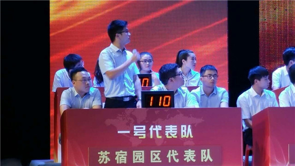 比賽現(xiàn)場氣氛熱烈緊張,特別是在搶答環(huán)節(jié),各代表隊你追我趕,不斷角力。遙遙領(lǐng)先的園區(qū)和洋河新區(qū)角逐冠亞軍的爭奪戰(zhàn),更是讓現(xiàn)場進入白熱化,贏得全場觀眾的陣陣掌聲和喝彩。經(jīng)過“精彩亮相”、“步步為營”、“快人一拍”和“一錘定音”等四輪激烈競爭,園區(qū)代表隊最終以260分的成績獲得第二名,與第一名洋河新區(qū)隊僅差10分。